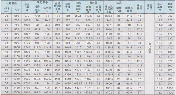 A系列300磅級法蘭的尺寸(相當(dāng)于MSS SP44)ASME16.47/A-1996(mm)