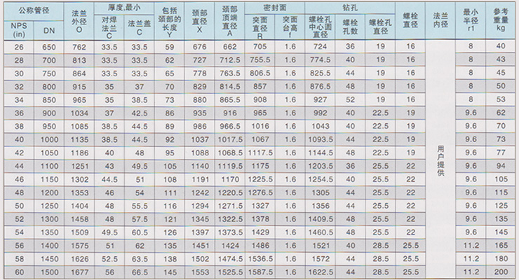 大口徑長頸對焊法蘭的規(guī)格參數(shù)